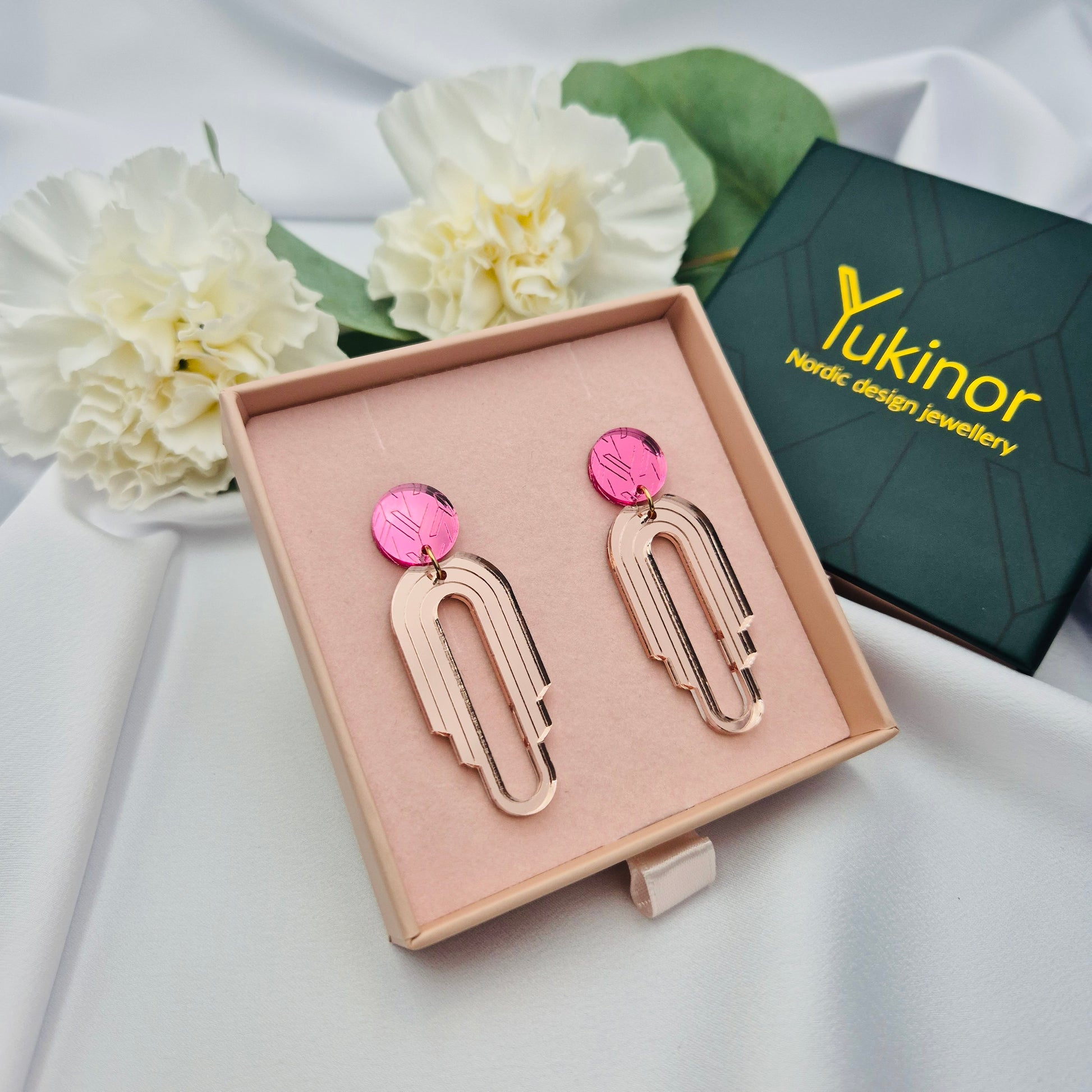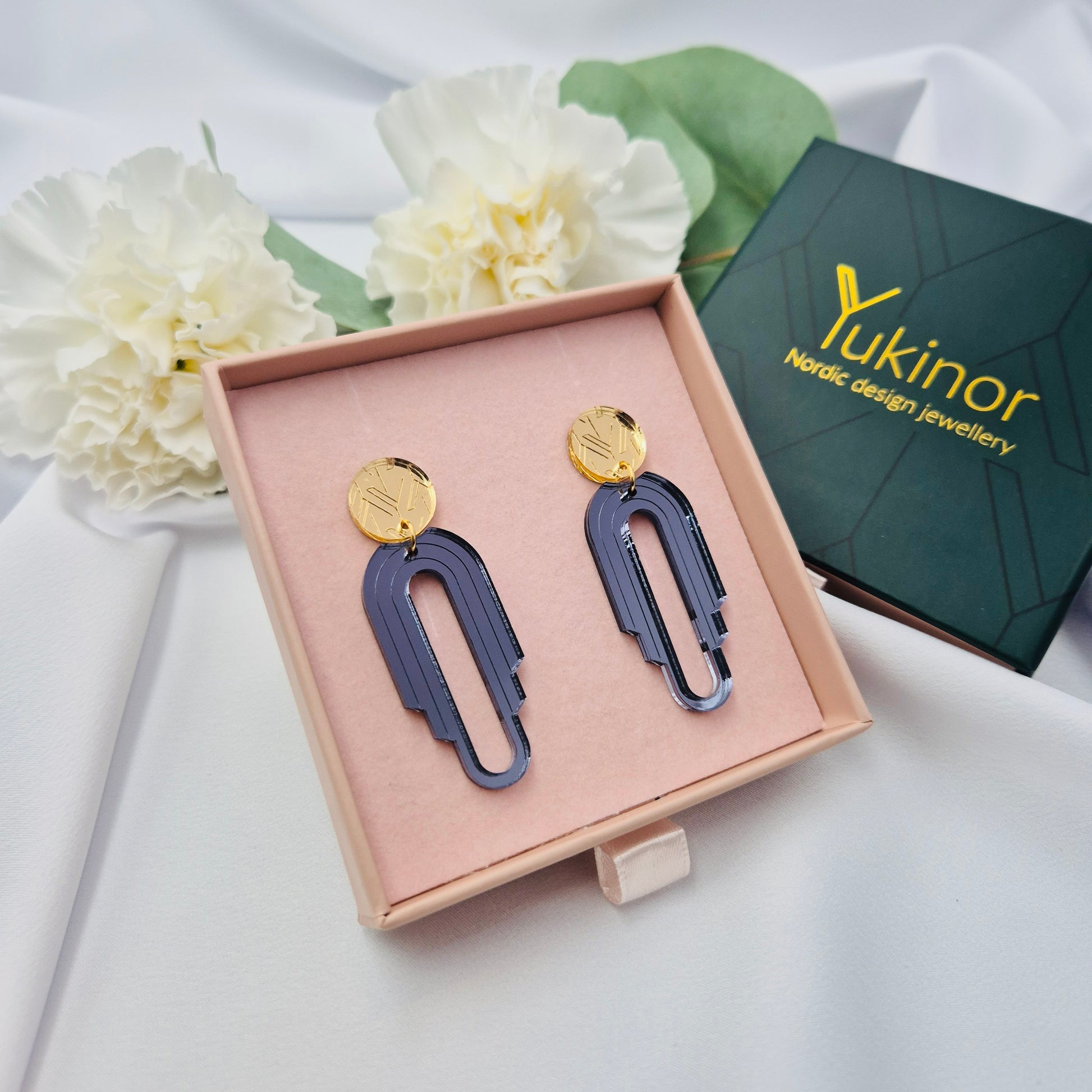 Moderni ja tyylikäs muotoilu Yukinor-printillä tekee Kaenista korvakorut juhliin ja elämäsi tärkeisiin hetkiin. Kaen on valmistettu kokonaan peiliakryylistä. Väriyhdistelmät on valittu huolellisesti luomaan näyttävän, mutta hillityn ulkonäön tälle mallille.